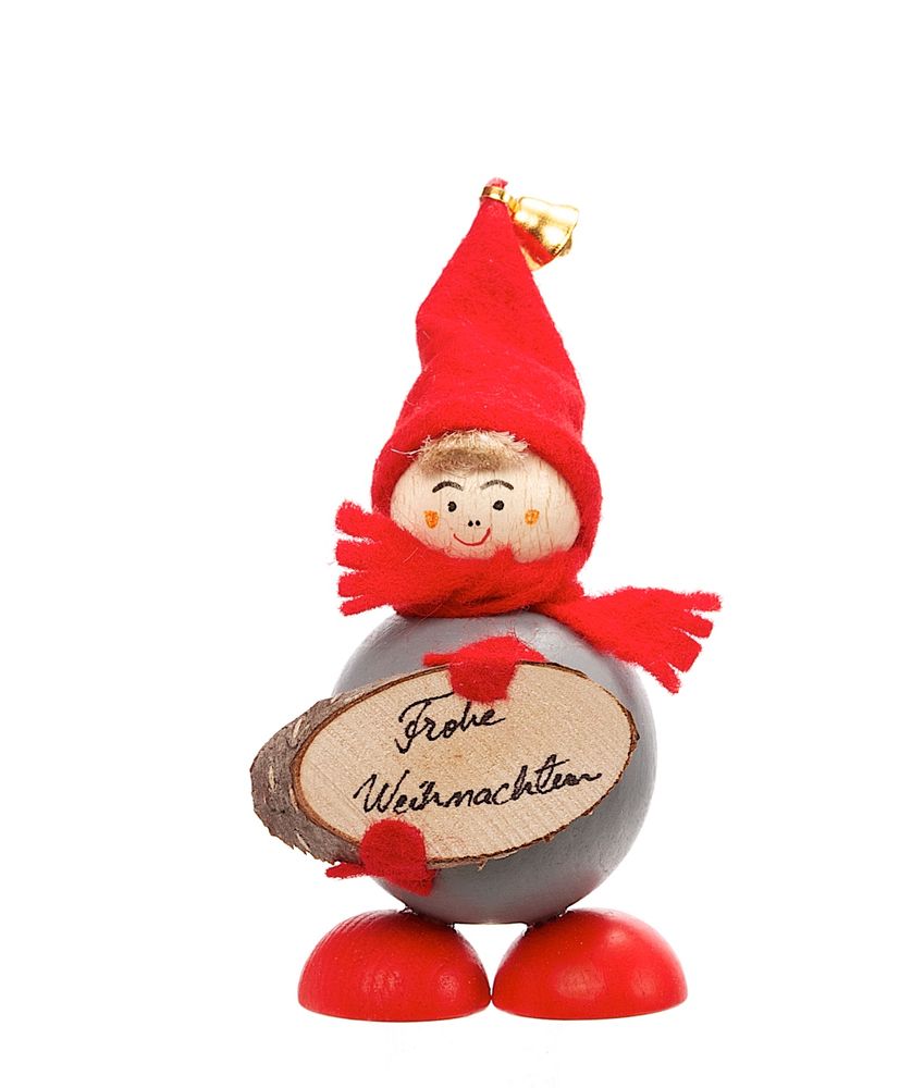 Filzmützen Tonttu mit Schild "Frohe Weihnachten", stehend