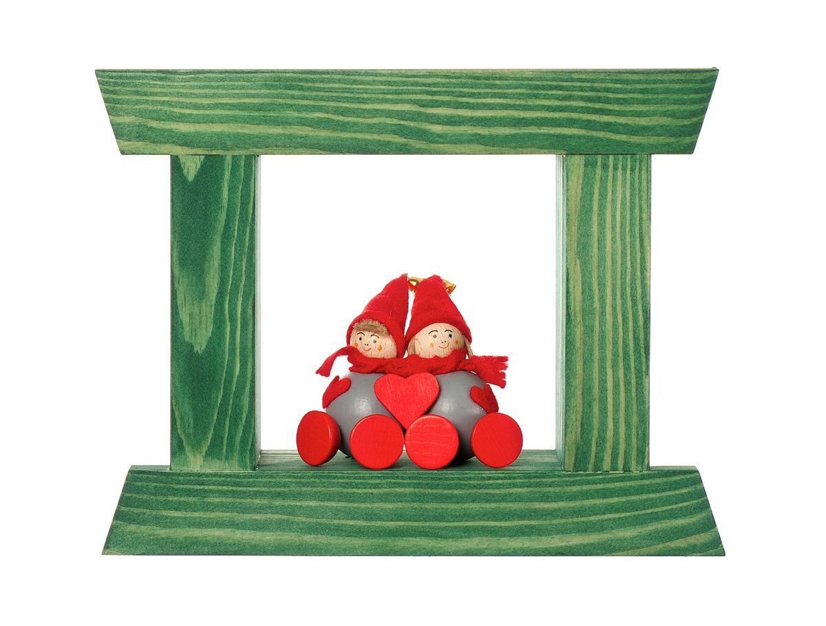Rustikal windowframe, pinewood, in green with Tonttu -couple and heart