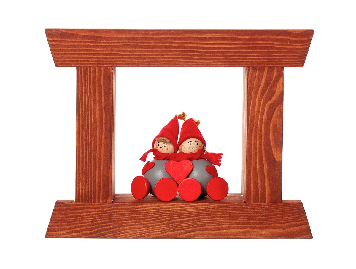 Rustikal windowframe, pinewood, in brown with Tonttu -couple and heart